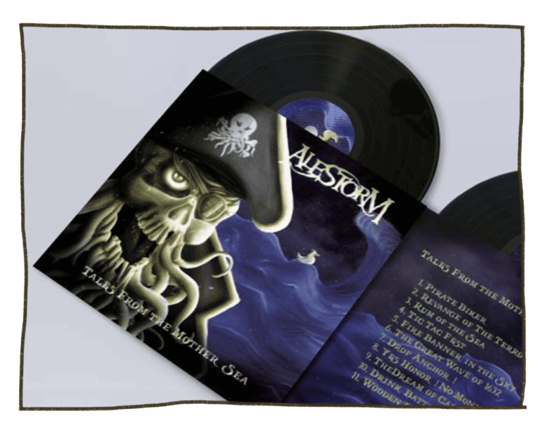 Alestorm est un groupe de métal écossais composant dans un univers de piraterie. J’ai décidé de leur créer une pochette d’album fictive à décliner sur divers support : pochette de vinyle, cd, affiche…
